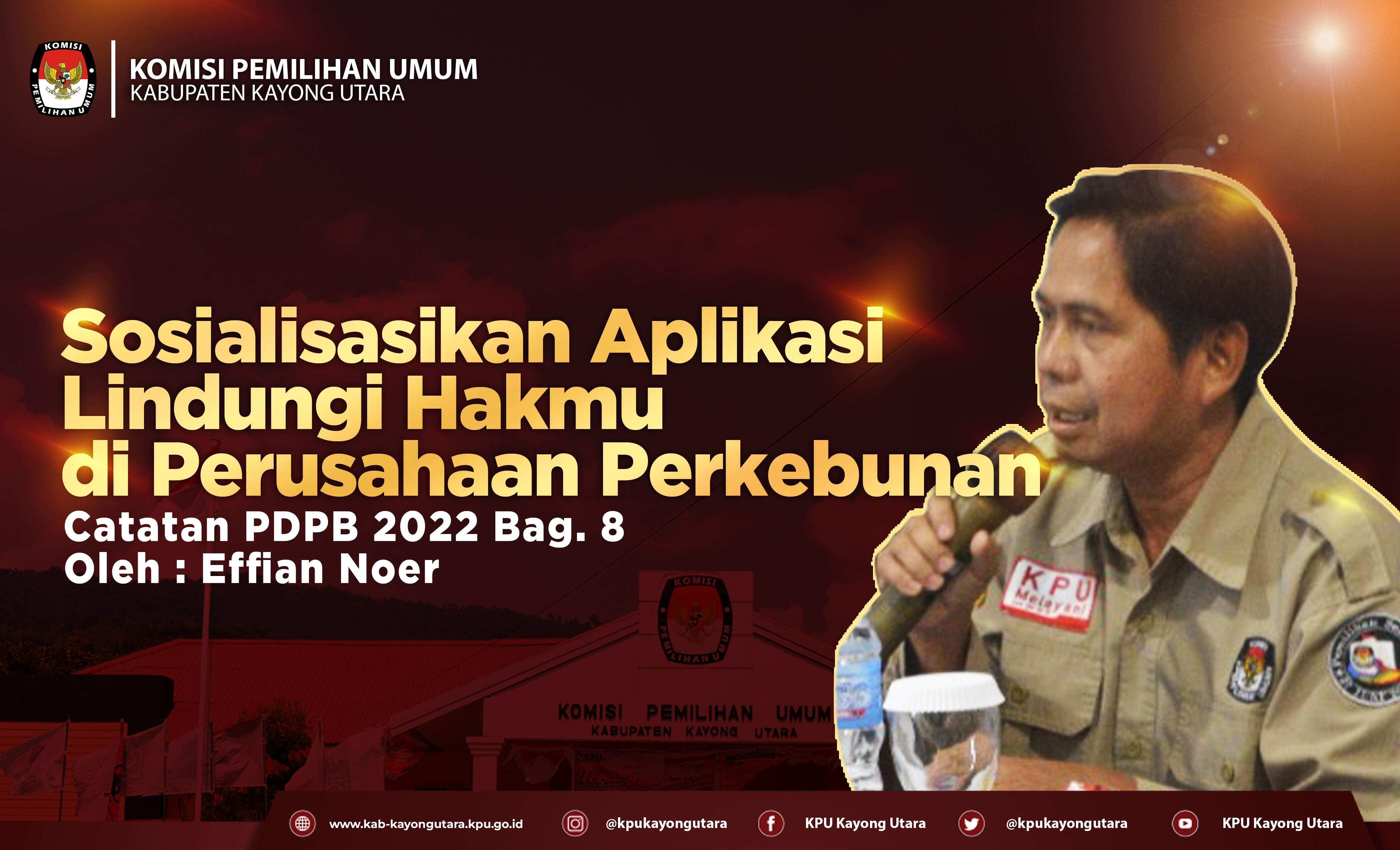Sebagai penyelenggawa pemilu mengingat pentingnya Pemutakhiran DPB, maka bertanggungjawab untuk menyediakan data pemilih yang komprehensif, akurat dan mutakhir. Terkait mekanisme peenyediaan tersebut KPU KKU berdasarkan regulasi mengharuskan berkoordinasi dan bekerjasama dengan dinas/Lembaga/badan terkait, Partai Politik, termasuk kelompok-kelompok masyarakat di perusahaan yang mempekerjakan masyarakat yang banyak, untuk memastikan mereka akan terdata sebagai pemilih dalam pemutakhirkan data pemilih secara berkelanjutan. Namun KPU KKU juga menyadari jika merujuk regulasi yang ada, sebagai daerah yang tidak melaksanakan Pilkada, tentu akan banyak mengalami berbagai kendala dalam melaksanakan Pemutakhiran DPB. Tidak seperti kabupaten/kota yang melaksanakan Pilkada tentu akan didukung oleh badan adhoc ditingkat kecamatan yaitu Panitia Pemilih Kecamatan (PPK), badan adhoc di tingkat kelurahan/desa yaitu Panitia Pemungutan Suara (PPS) serta di tingkat RT yaitu Petugas Pemutakhiran Daftar Pemilih (PPDP). Karenanya dalam Pemutakhiran DPB, KPU KKU harus melakukan berbagai terobosan, diantaranya bersosialisasi ke berbagai pihak termasuk ke perusahaan-perusahaan yang ada di KKU. Berdasarkan beberapa yang telah dijabarkan pada tulisan-tulisan sebelumnya, tujuan sosialisasi ke kelompok masyarakat termasuk ke perusahaan dititikbeeratkan kepada : Pertama, Pengenalan Aplikasi Lindungi Hakmu, targetnya adalah pengambil kepentingan di perusahaan dan pemilih yang ada di perusahaan mengetahui dan memastikan hak pilihnya dapat tersalurkan pada saat Pilkada maupun Pemilu. Kedua, Sebagai pemetaan TPS khusus jika memungkinkan diadakan TPS Khusus di perusahaan; Ketiga, jaminan bagi pemilih yang memenuhi syarat agar dapat didata dan terdaftar dalam daftar pemilih, sehingga dapat menggunakan hak pilihnya pada saat Pilkada dan Pemilu. Dalam Mensosialisasikan Pemutakhiran DPB ke perusahaan ini KPU KKU mengadakan sosialisasi di tiga perusahaan yaitu perusahaan PT CUS Desa Matan dan PT Jalin Vanio Desa Lubuk Batu Kecamatan Simpang Hilir. Pilihan tersebut karena berdasarkan pengalaman pada pemilu tahun 2019 ketika menjelang penetapan Daftar Pemilih Tetap (DPT) ke dua perusahaan tersebut pernah mengajukan karyawan perusahaan dengan jumlah ribuan yang belum terdaftar sebagai pemilih dan pemilih pindahan, sehigga KPU KKU pernah membuat TPS Khusus di perusahaan tersebut. Kemudian sosialisasi lainnya yaitu ke PT Kalimantan AGRO Pusaka (PT KAP) di desa Durian Sebatang Kecamatan Sponti. Sosialisasi di perusahaan ini dianggap perlu karena posisi perusahaan terletak di daerah yang tergolong sebagai daerah sulit transfortasi, sehingga dihaapkan KPU KKU dapat menyerap aspirasi dan dapat mengakomodir pemilih termasuk pemilih pindahan. Dalam realisasinya, Sosialisasi Pemutakhiran DPB di tiga perusahaan tersebut berjalan dengan baik sesuai dengan rencana. Pihak perusahaan juga menyambut dengan baik, rata-rata mereka memasang Aplikasi Lindungi Hakmu, sehingga diharapkan sejak dini pihak perusahaan dan pemilih di sana dapat memikirkan dengan cermat untuk menggunakan hak pilihnya pada saat pilkada dan pemilu. (Penulis Komisioner KPU KKU Divisi Perencanaan, Data dan Informasi)
