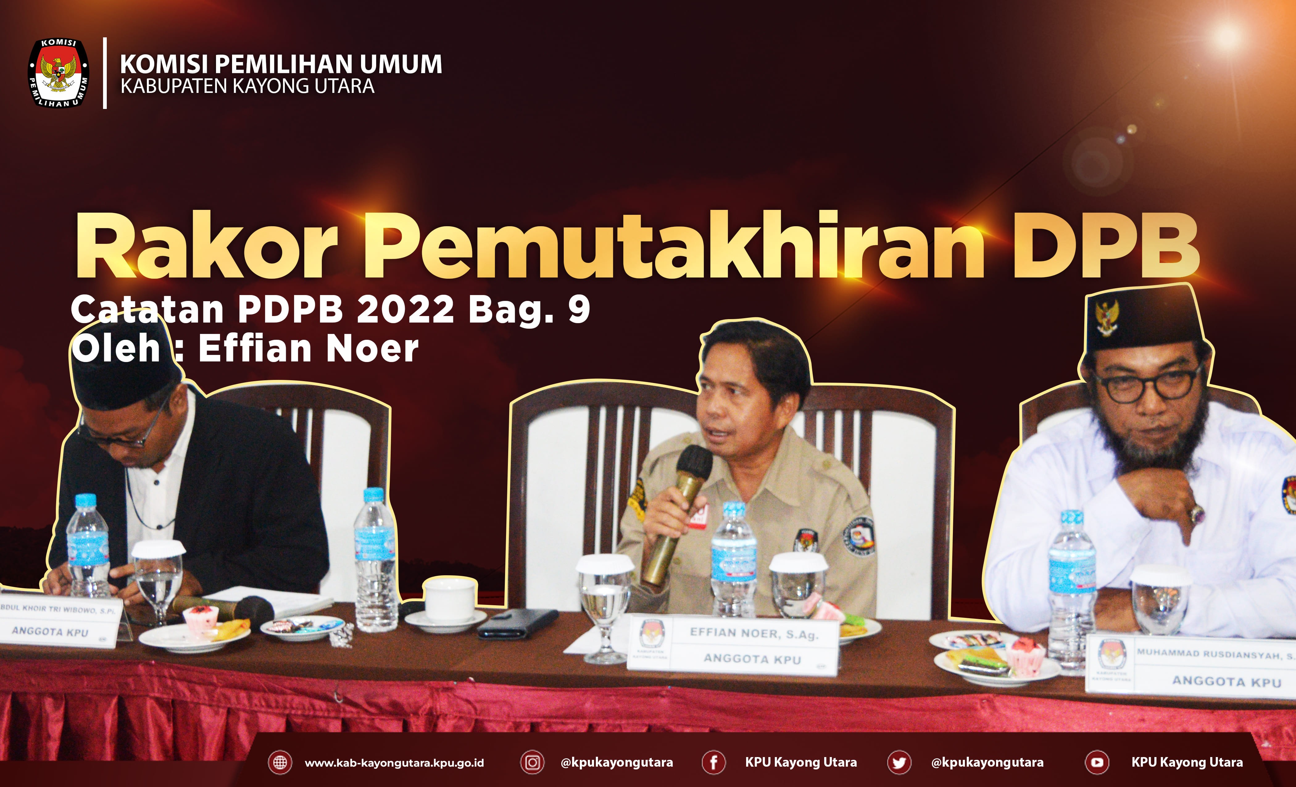 Dalam Perjalanan Pemutakhiran DPB, pada Juni 2022 KPU KKU menerima turunan Data dari KPU RI berdasarkan Surat Edaran KPU RI Nomor 17 Tahun 2022, Tentang Tindak Lanjut Hasil Pemadanan Data Pemilih Berkelanjutan Semester II Tahun 2021 Komisi Pemilihan Umum dengan Data Kependudukan Kementerian Dalam Negeri Republik Indonesia sebagaimana juga turununan SE tersebut yakni Surat KPU RI Nomor: 2331/PL.01-SD/14/2022 Perihal Tindak lanjut Hasil Pemadanan dan Persiapan Penyusunan Daftar Pemilih Pemilu Tahun 2024 tanggal 20 September 2022, yang bertujuan agar KPU/KIP Kabupaten /Kota melakukan pencermatan dan menindaklanjuti hasil Pemadanan Data Pemilih Berkelanjutan Semester II Tahun 2021 dan diharapkan agar KPU/KIP Kabupaten/Kota dapat memperbaiki dan memperbaharui Data Pemilih Berkelanjutan. Data tersebut terdiri dari 1. Data Padan terdiri dari 2 (dua) kategori data yakni data padan sama wilayah sebanyak 2.525 Pemilih dan Data Padan Beda Wilayah sebanyak 1.198 Pemilih. 2. Data Meninggal : KPU KKU mendapatkan Data Meninggal yang bersumber dari SIAK sebesar 441 pemilih dan data meninggal BPS sebesar 790 pemilih. 3. Data Ganda : Terkait data ganda KPU KKU mendapatkan data sebanyak 6.821 pemilih yang terbagi atas data ganda dalam Kabupaten Kayong Utara sebanyak 2.352 pemilih, data ganda antar kabupaten dalam Provinsi Kalimantan Barat sebanyak 3.183 pemilih, dan data ganda antar provinsi se Indonesia sebanyak 1.286 pemilih. 4. Data Anomali: untuk data anomali sebanyak 19 Pemilih 5. Data Tidak Padan : Data tidak padan yang diturunkan KPU RI ke KPU KKU sebanyak 6.952 pemilih. 6. Data Anggota Kartu Keluarga (KK) Padan yang tidak ada dalam DPT : KPU mendapatkan data tersebut sebanyak 12.660 pemilih. Oleh karena itu baik data ganda, data anomali, data tidak padan dan data meninggal yang ada di KPU KKU harus diurai yaitu dibersihkan. Untuk mengeksekusi data tersebut sebenarnya telah dilakukan dengan mengecek (menyandingkan) data tersebut dengan Data Penduduk Potensial Pemilih Pemilu (DP4) termutakhir. Di DP4 inilah dapat ditelusuri, Akan tetapi dalam pennyandingan dengan DP4 ini dirasakan masih kesulitan, karena KPU KKU belum memiliki DP4 termutakhir. Olehkarenanya berikhtiar bekerjasama dengan Disdukcapil KKU. Alhamdullillah Disdukcapil cukup respon, selama kurang lebih dua minggu Dukcapil dan KPU KKU duduk bersama, akhirnya data-data tersebut dapat diurai dan dapat diselesaikan. Akan tetapi demi untuk kevalidan data-data yang dapat diselesaikan tersebut memang harus diuji, yaitu dengan mengambil sampel yaitu melakukan pencocockan dan penelitian terbatas (Coktas). Dalam Hal ini KPU KKU mencoba mengambil sampel 10% data-data tersebut untuk dilakukan coktas di lima Kecamatan dari enam kecamatan yang ada di KKU yaitu Kecamatan Sukadana, Kecamatan Simpang Hilir, Kecamatan Teluk Batang, Kecamatan Sponti dan Kecamatan Pulau Maya Karimata. Hasil dari Coktas dapat dikatakan data-data tersebut memang benar. Sehingga dapat membuktikan data-data yang dikerjakan bersama antara Disdukcapil dan KPU KKU susdah berjalan dengan baik dan benar. (Penulis Komisioner KPU KKU Divisi Perencanaan, Data dan Informasi)