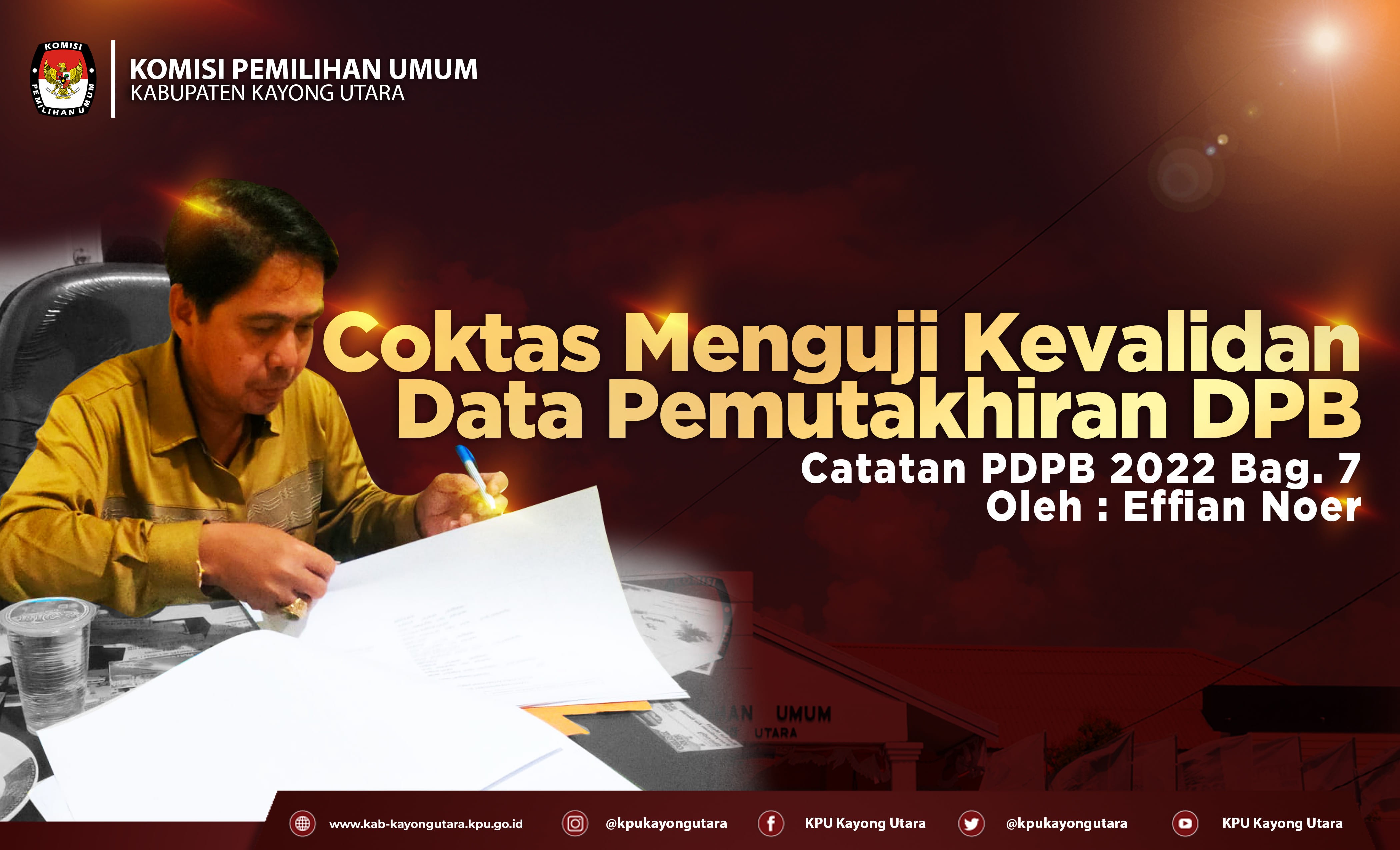Dalam Perjalanan Pemutakhiran DPB, pada Juni 2022 KPU KKU menerima turunan Data dari KPU RI berdasarkan Surat Edaran KPU RI Nomor 17 Tahun 2022, Tentang Tindak Lanjut Hasil Pemadanan Data Pemilih Berkelanjutan Semester II Tahun 2021 Komisi Pemilihan Umum dengan Data Kependudukan Kementerian Dalam Negeri Republik Indonesia sebagaimana  juga turununan SE tersebut yakni Surat KPU RI Nomor: 2331/PL.01-SD/14/2022 Perihal Tindak lanjut Hasil Pemadanan dan Persiapan Penyusunan Daftar Pemilih Pemilu Tahun 2024 tanggal 20 September 2022, yang bertujuan agar KPU/KIP Kabupaten /Kota melakukan pencermatan dan menindaklanjuti hasil Pemadanan Data Pemilih Berkelanjutan Semester II Tahun 2021 dan diharapkan agar KPU/KIP Kabupaten/Kota dapat memperbaiki dan memperbaharui Data Pemilih Berkelanjutan. Data tersebut terdiri dari 1.         Data Padan terdiri dari 2 (dua) kategori data yakni data padan sama wilayah sebanyak 2.525 Pemilih dan Data Padan Beda Wilayah sebanyak 1.198 Pemilih. 2.         Data Meninggal : KPU KKU mendapatkan Data Meninggal yang bersumber dari SIAK sebesar 441 pemilih dan data meninggal BPS sebesar 790 pemilih. 3.         Data Ganda : Terkait data ganda KPU KKU mendapatkan data sebanyak 6.821 pemilih yang terbagi atas data ganda dalam Kabupaten Kayong Utara sebanyak 2.352 pemilih, data ganda antar kabupaten dalam Provinsi Kalimantan Barat sebanyak 3.183 pemilih, dan data ganda antar provinsi se Indonesia sebanyak 1.286 pemilih. 4.         Data Anomali: untuk data anomali sebanyak 19 Pemilih 5.         Data Tidak Padan : Data tidak padan yang diturunkan KPU RI ke KPU KKU sebanyak 6.952 pemilih. 6.         Data Anggota Kartu Keluarga (KK)  Padan  yang  tidak ada dalam DPT : KPU mendapatkan data tersebut sebanyak 12.660 pemilih.      Oleh karena itu baik data ganda, data anomali, data tidak padan dan data meninggal yang ada di KPU KKU harus diurai yaitu dibersihkan. Untuk mengeksekusi data tersebut sebenarnya telah dilakukan dengan mengecek (menyandingkan) data tersebut dengan Data Penduduk Potensial Pemilih Pemilu (DP4) termutakhir. Di DP4 inilah dapat ditelusuri, Akan tetapi dalam pennyandingan dengan DP4 ini dirasakan masih kesulitan, karena KPU KKU belum memiliki DP4 termutakhir. Olehkarenanya berikhtiar bekerjasama dengan Disdukcapil KKU. Alhamdullillah Disdukcapil cukup respon, selama kurang lebih dua minggu Dukcapil dan KPU KKU duduk bersama, akhirnya data-data tersebut dapat diurai dan dapat diselesaikan. Akan tetapi demi untuk kevalidan data-data yang dapat diselesaikan tersebut memang harus diuji, yaitu dengan mengambil sampel yaitu melakukan pencocockan dan penelitian terbatas (Coktas). Dalam Hal ini KPU KKU mencoba mengambil sampel 10% data-data tersebut untuk dilakukan coktas di lima Kecamatan dari enam kecamatan yang ada di KKU yaitu Kecamatan Sukadana, Kecamatan Simpang Hilir, Kecamatan Teluk Batang, Kecamatan Sponti dan Kecamatan Pulau Maya Karimata. Hasil dari Coktas dapat dikatakan data-data tersebut memang benar. Sehingga dapat membuktikan data-data yang dikerjakan bersama antara Disdukcapil dan KPU KKU susdah berjalan dengan baik dan benar.  (Penulis Komisioner KPU KKU Divisi Perencanaan, Data dan Informasi)