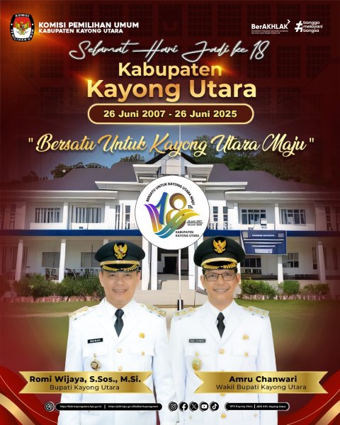 “Secara kelembagaan KPU mengucapkan Dirgahayu Kabupaten Kayong Utara ke 18, semangat untuk terus menyatukan langkah untuk Kayong Utara Maju,” kata Marsum.