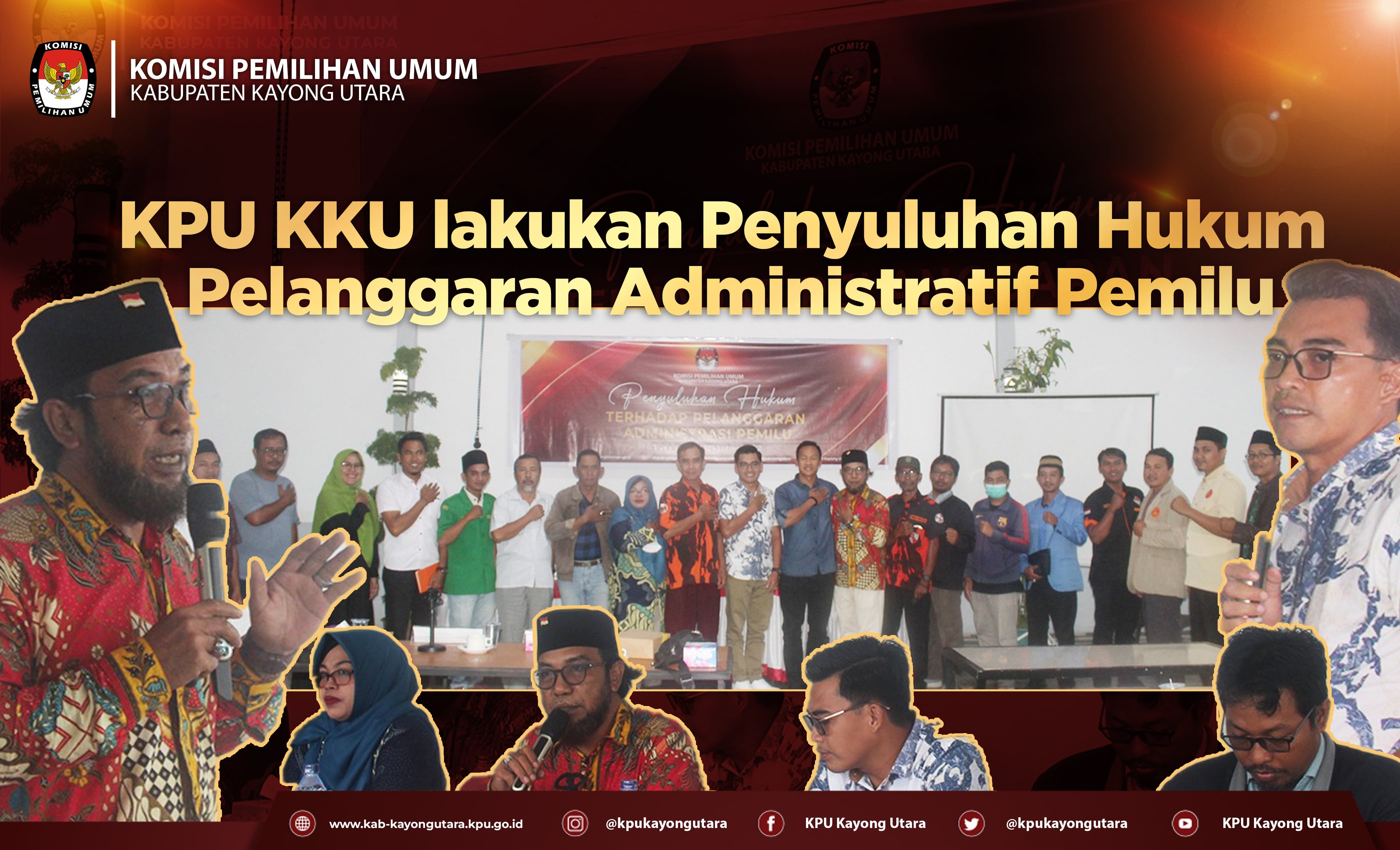 Sukadana, 09/10/2022. Komisi Pemilihan Umum (KPU) Kabupaten Kayong Utara (KKU) menyelenggarakan Penyuluhan Hukum tentang Pelanggaran Administratif Pemilu pada (08/10). Kegiatan tersebut dihadiri oleh Organisasi Perangkat Daerah (OPD) dan Organisasi Masyarakat di kabupaten Kayong Utara. “Saat ini kita sedang dalam tahapan verpol (Pendaftaran, Verifikasi, dan Penetapan Partai Politik,red) maka kami melakukan penyuluhan hukum terkait pelanggaran administratif pemilu ini supaya masyarakat dapat sama-sama mengawasi jalannya Tahapan Pemilu,” kata Anggota Divisi Hukum dan Penangawasan KPU KKU, M. Rusdiansyah/Dhaus. Dhaus, sapaan akrabnya menuturkan bahwa Pelanggaran administratif pemilu diatur dalam Pasal 460 dan seterusnya di UU Nomor 7 Tahun 2017 tentang Pemilihan Umum, serta diturunkan dalam Perbawaslu Nomor 7 Tahun 2018 tentang Penanganan Temuan dan Laporan dan pelanggaran Pemilu dan diatur dalam Perbawaslu Nomor 8 tahun 2018 tentang Penyelesaian Pelanggaran Administratif Pemilu. Lanjutnya, Pelanggaran Administratif Pemilu adalah perbuatan atau tindakan yang melanggar tata cara, prosedur, atau mekanisme yang berkaitan dengan administrasi pelaksanaan Pemilu di setiap Tahapan Penyelenggaraan Pemilu, selain itu Pelanggaran Administratif juga berkembang ada yang namanya Pelanggaran Administratif secara terstruktur, sistematis, dan masif. “dalam rakor kami di KPU RI dan KPU Provinsi disebutkan bahwa Divisi Hukum dan Pengawasan serta Subbagian HSDM merupakan selimut KPU, maka penyuluhan hukum semacam ini dilakukan agar masyarakat dapat memahami hak dan kewajibannya sebagaimana diatur dalam regulasi, selain itu agar KPU dapat menerima masukan dan saran dari para undangan supaya KPU KKU dapat melakukan tindakan-tindakan pencegahan pelanggaran,” kata Dhaus.