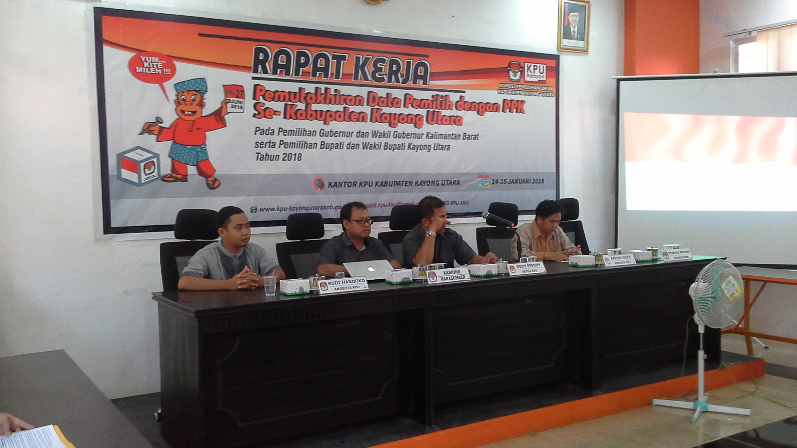 Untuk menyukseskan, mengefektifkan dan memastikan tahapan pemutakhiran data pemilih berlangsung dengan benar dan dapat dipertanggungjawabkan, KPU KKU menggelar rapat kerja (raker) bersama dengan PPK se KKU. Raker ini dilakukan sejak 14 sampai 15 Januari 2018, bertempat di Aula KPU KKU.Hadir dalam kesempatan raker ini, Anggota KPU Provinsi Kalbar, Kasiono, yang sekaligus memberikan materi tentang pemutakhiran data pemilih dalam Pemilihan Gubernur-Wakil Gubernur Kalbar dan Pemilihan Bupati-Wakil Bupati KKU 2018.Effian Noer, Anggota KPU KKU menjelaskan, "Raker dengan PPK ini sebagai pembekalan juga agar terbina pemahaman yang benar tentang proses pemutakhiran data pemilih, dan sebab pada tanggal 20 Januari nanti akan ada gerakan Coklit Serentak, maka pasca raker ini, akan dilaksanakan juga raker dengan PPS dan bimbingan teknis untuk Petugas Pemutakhiran Data Pemilih (PPDP) yang akan melakukan tugas Coklit nanti."Direncanakan, mulai tanggal 16-17 Januari ini bimtek PPDP akan dilaksanakan. Diharapkan dengan adanya kegiatan raker dan bimtek, maka proses pemutakhiran data pemilih dapat berlangsung dengan lancar, efektif-efisien dan datanya valid. Tim