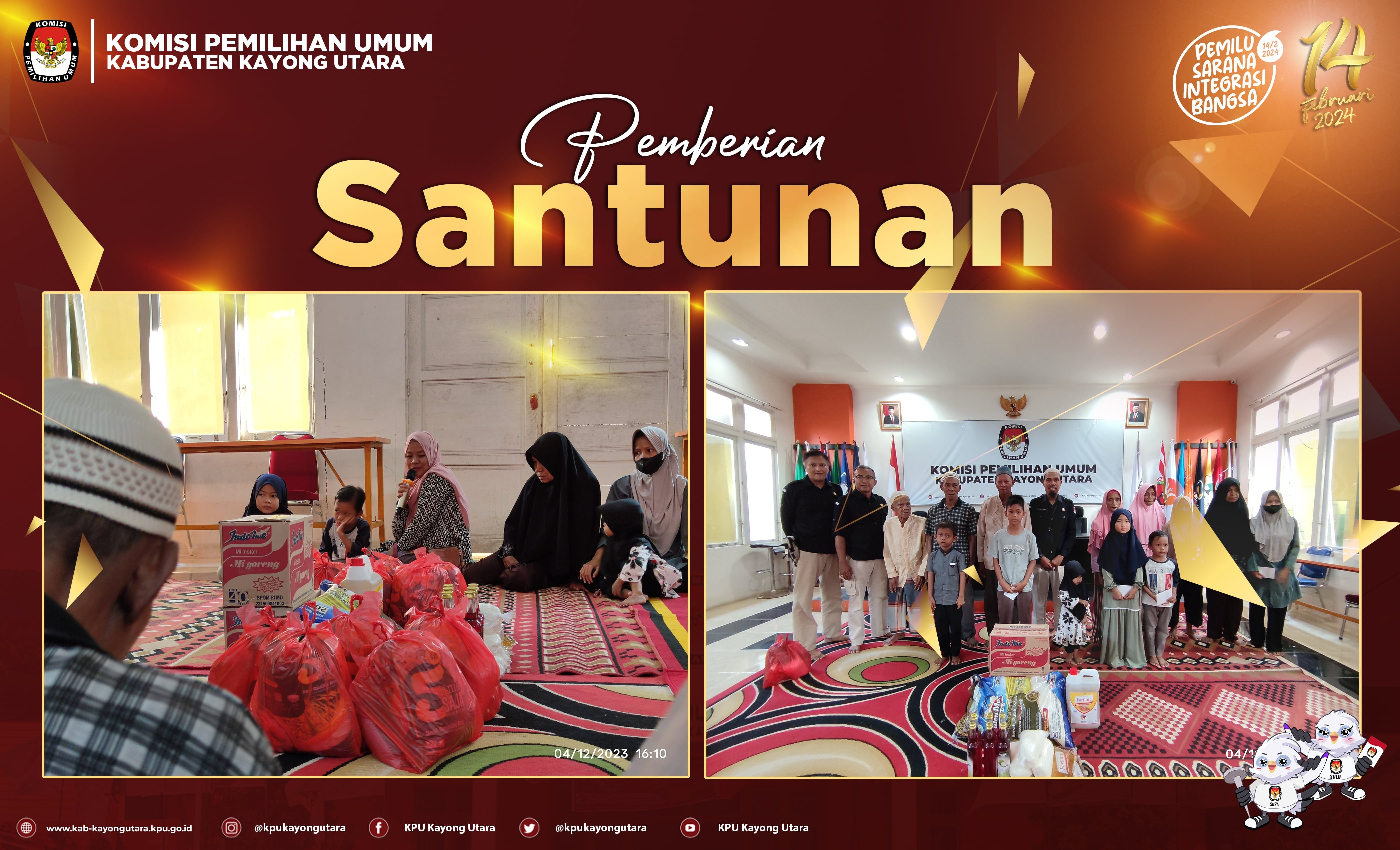 Sukadana (12/04/2023). Komisi Pemilihan Umum (KPU) Kabupaten Kayong Utara (KKU) Menyelenggarakan Kegiatan Santunan kepada Anak-anak Yayasan Al-Fattah dan Masyarakat di Lingkungan Kantor KPU KKU, bertempat di Aula KPU kabupaten Kayong Utara (KKU), Rabu (12/04/2023). Dihadiri oleh Sekretaris, Kasubbag dan Pegawai Sekretariat KPU KKU. Dalam sambutannya, Sekretaris KPU Kabupaten Kayong Utara, M.Muslih Adnan menyampaikan Kegiatan Santunan ini sudah dilaksanakan sebanyak tiga kali selama mendekati Pemilu. Dengan harapan memohon Doa agar Perhelatan KPU yang akan dilaksanakan secara serentak di seluruh Indonesia khususnya Kabupaten Kayong Utara yaitu Pemilu pada tgl 14 Februari 2024 dapat berjalan dengan lancar serta mewujudkan Pemimpin yang amanah untuk Indonesia dan untuk masyarakat Kabupaten Kayong Utara. Lebih lanjut Sekretaris KPU KKU menyampaikan tahapan yang saat ini sedang berjalan pada proses Pemilu Tahun 2024 yaitu Tahapan data Daftar Pemilih, terakhir penentuan Daftar Pemilih Sementara (DPS) berdasarkan hasil Rapat Pleno Terbuka oleh KPU KKU yang telah diselenggarakan kemarin. " Semoga santunan ini dapat diterima dan bermanfaat untuk semuanya. Saya menghimbau agar Bapak/Ibu yang hadir disini bisa memastikan data dirinya sudah terdaftar dalam DPS sebagai calon Pemilih Pemilu tahun 2024" Tambah Adnan. Rabu (12/04/2023). Sementara itu, Ibu Romiatin dari Yayasan Al-Fattah mengucapkan terimakasih atas kesempatan yang diberikan. "Terimakasih saya ucapkan semoga apa yang diberikan dapat menjadi berkah dan bermanfaat. Saya berharap agar kedepannya yang diundang pada kegiatan KPU seperti saat ini bisa terus bertambah. Rabu(12/04/2023)" kata Ibu Romiatin dari Yayasan Al-Fattah. (P.I.)