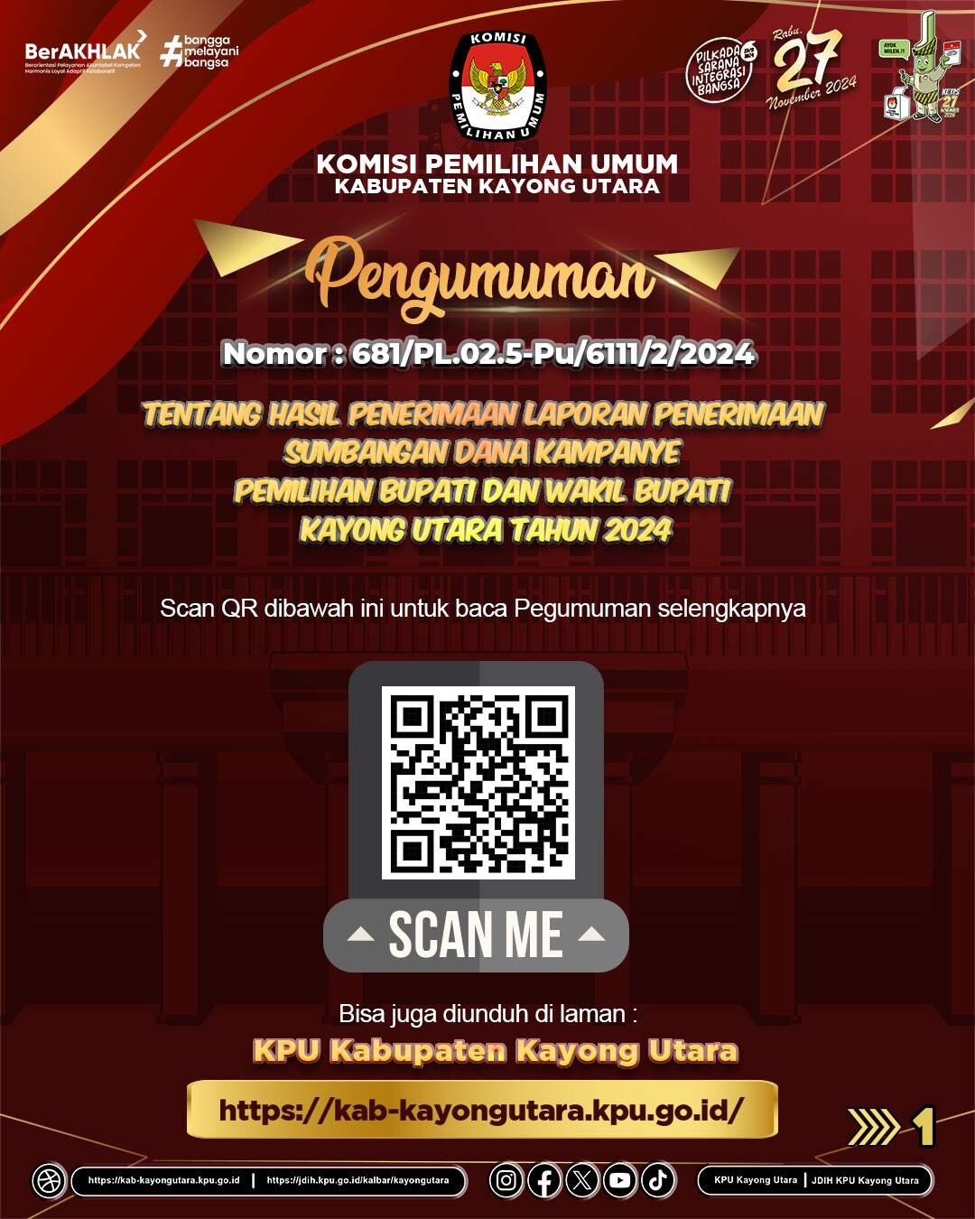 #TemanPemilih , KPU Kabupaten Kayong Utara menyampaikan Pengumuman Hasil Penerimaan Laporan Penerimaan Sumbangan Dana Kampanye Pemilihan Bupati dan Wakil Bupati Kayong Utara Tahun 2024