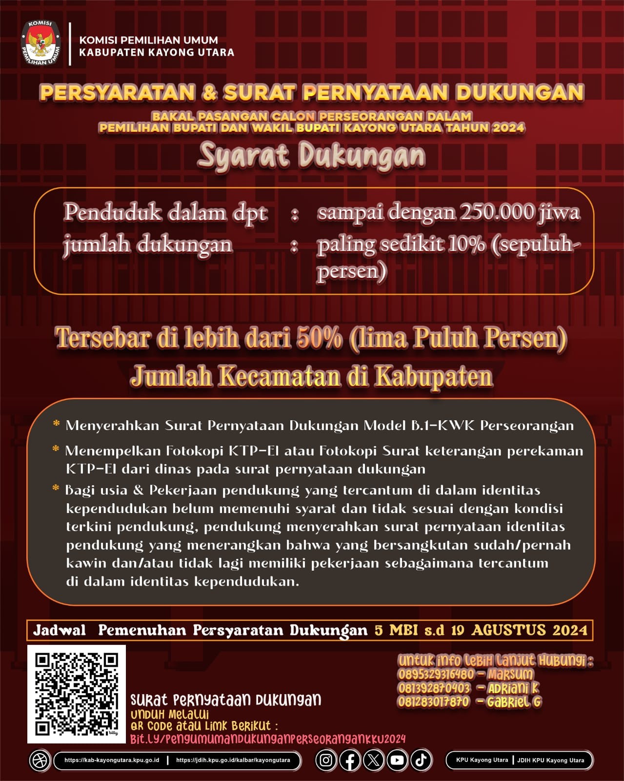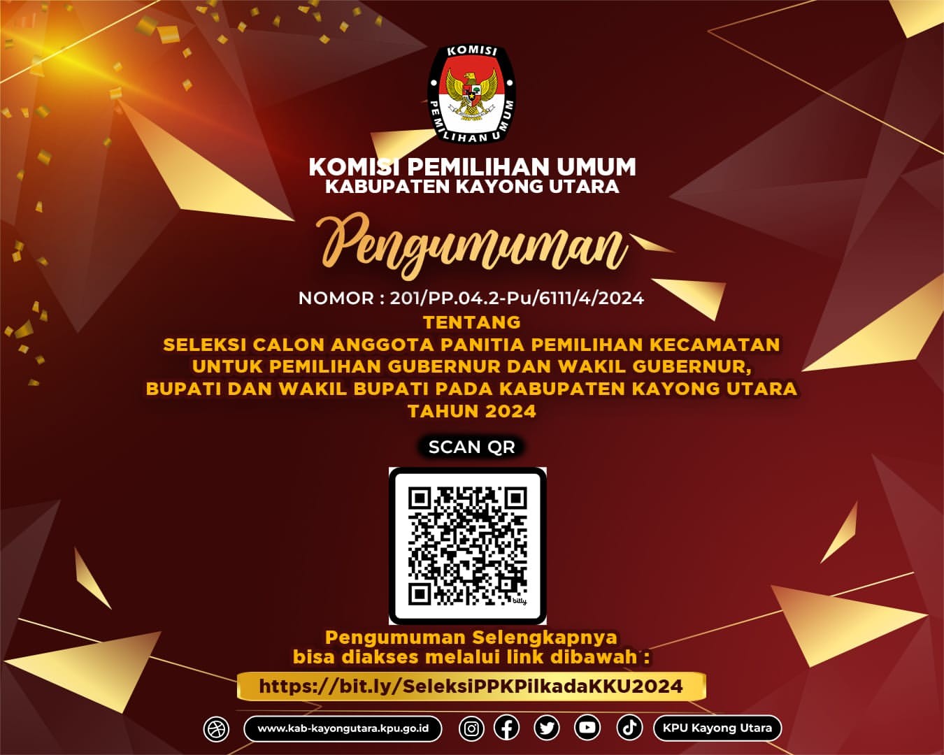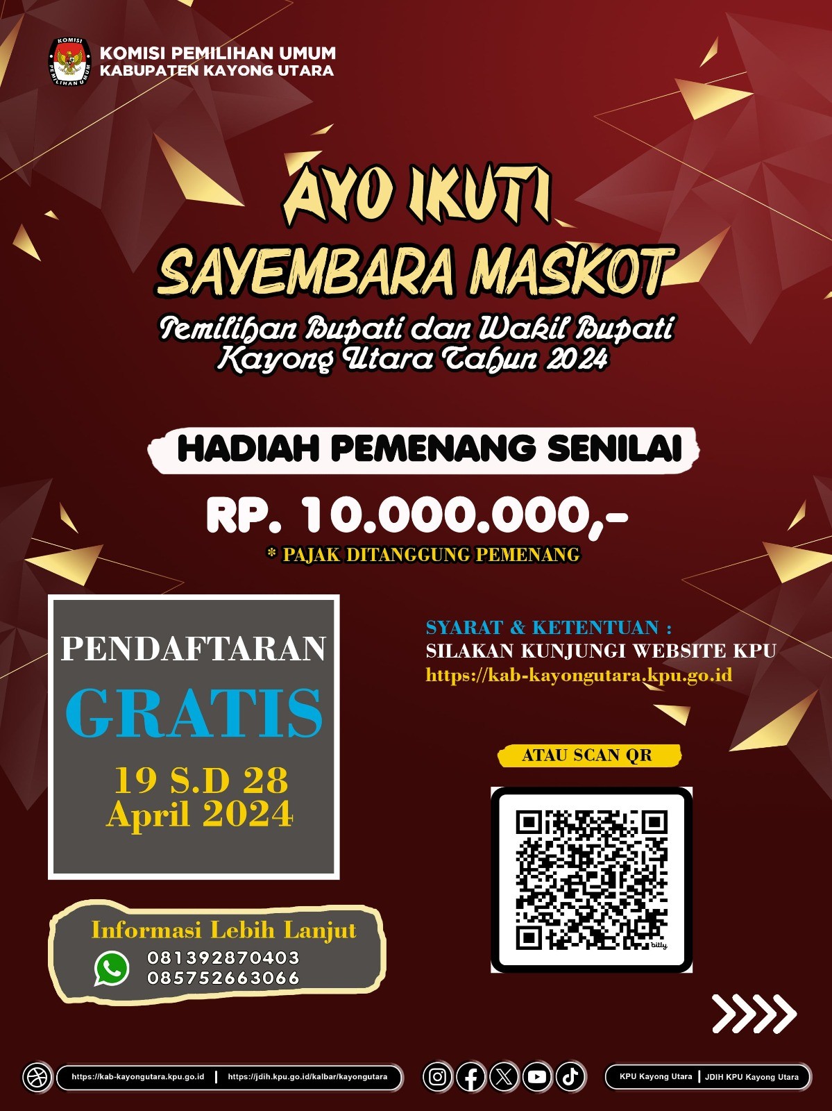 Barang siapa, pandai membuat desain, bolehlah turut serta mengikuti Sayembara Maskot Pemilihan Bupati dan Wakil Bupati Kayong Utara Tahun 2024.
